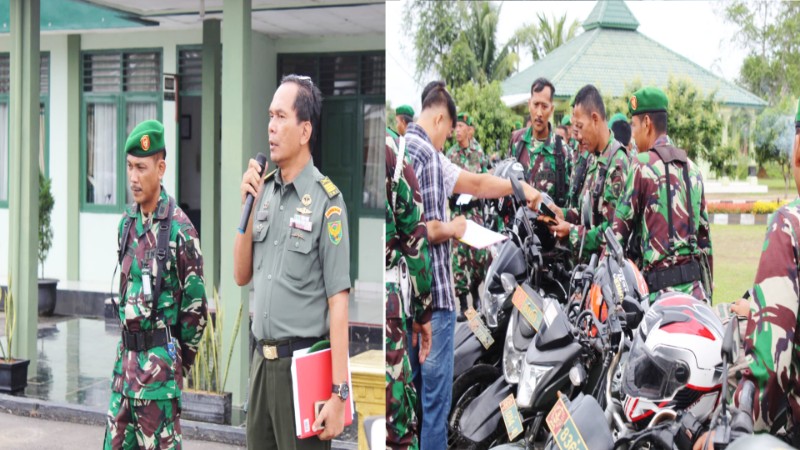 MENGGALA–Ws Perwira Seksi Intelijen Kodim 0426 Tulangbawang (Tuba), Kapten Inf Sutio menginpeksi secara mendadak, surat- surat dan kelengkapan kendaraan dinas (Randis) anggota Kodim 0426/TB di Makodim 0426/TB Jl.Lintas Timur KM 113 Menggala- Tulang Bawang, Senin (03/02/2020).