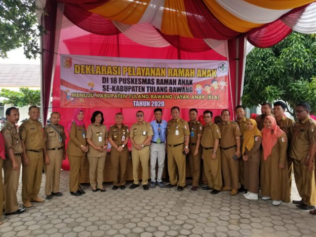 TULANGBAWANG – Puskesmas Se Kabupaten Tulangbawang melaksanakan deklarasi pelayanan ramah anak yang dipusatkan di Puskesmas Tulangbawang I Kampung Tunggal Warga, Kecamatan Banjaragung, Senin (10/02/2020).
