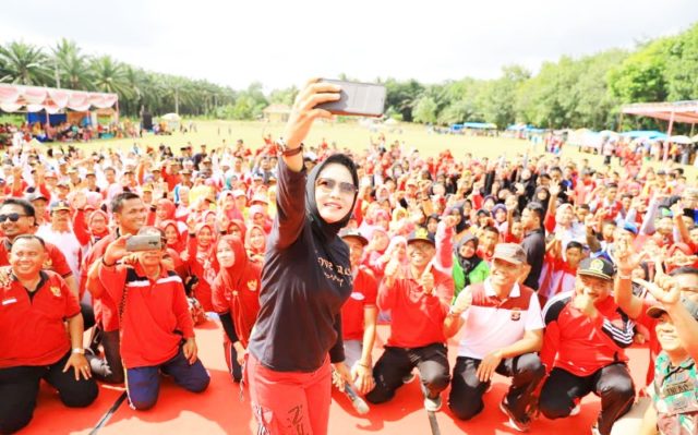 Bupati senam BMW dan senam kreasi bersama masyrakat setempat. Saat senam Bupati menghadiahkan jaket yang dikenakannya kepada seorang ibu yang antusias senam BMW. Di lokasi kunjungan digelar stand OPD Pemkab Tuba dan UKM kecamatan Gedung Aji Baru. Pelayanan Administrasi Kependudukan oleh Disdukcapil Tuba, yang disambut antusias warga setempat.
