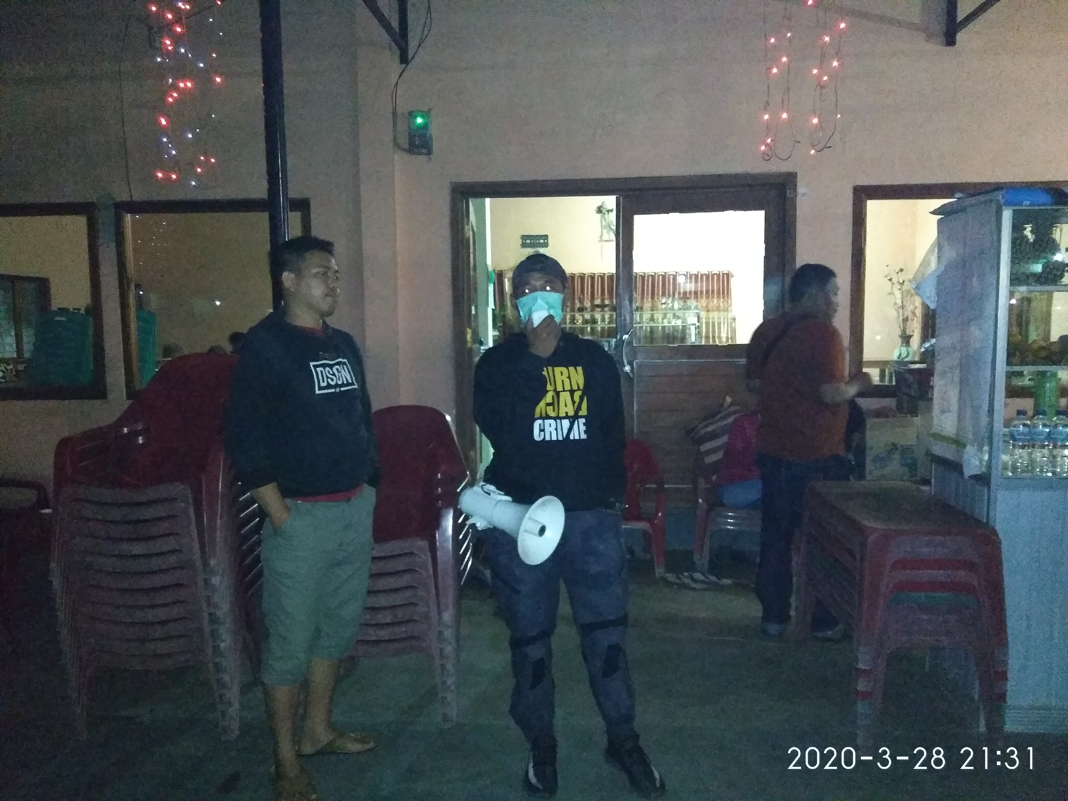 “Assalamualaikum, mohon maaf kepada seluruh warga yang sedang berkumpul – kumpul ditempat ini untuk mendengarkan sosialisasi dan Intruksi dari Kapolri tentang larangan berkumpul terkait dengan upaya pencegahan penyebaran virus Corona,”kata dia dengan pengeras suaranya.