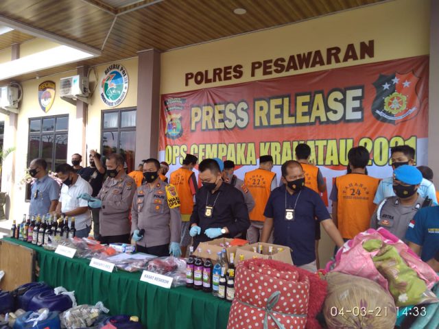 Kapolres Pesawaran AKBP Vero Aria Radmantyo melalui Wakapolres Kompol Yohanis mengungkapkan, OPS Cempaka Krakatau 2021 yang dilaksanakan selama 14 hari, berhasil mengungkap 11 kasus dengan 22 orang tersangka.