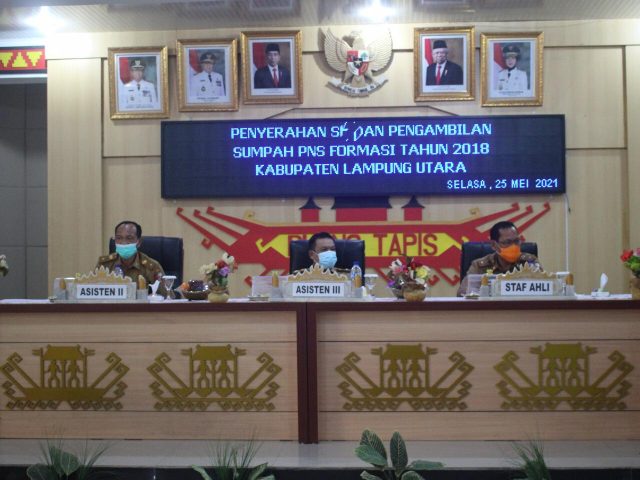 Rinciannya, 23 Tenaga Fungsional Guru, 49 Fungsional Kesehatan dan 7 Tenaga Teknis. Penyerahan Surat Keputusan (SK) dan Pengambilan sumpah berlangsung di Ruang Tapis Setdakab Lampung Utara, Selasa (25/05/2021).