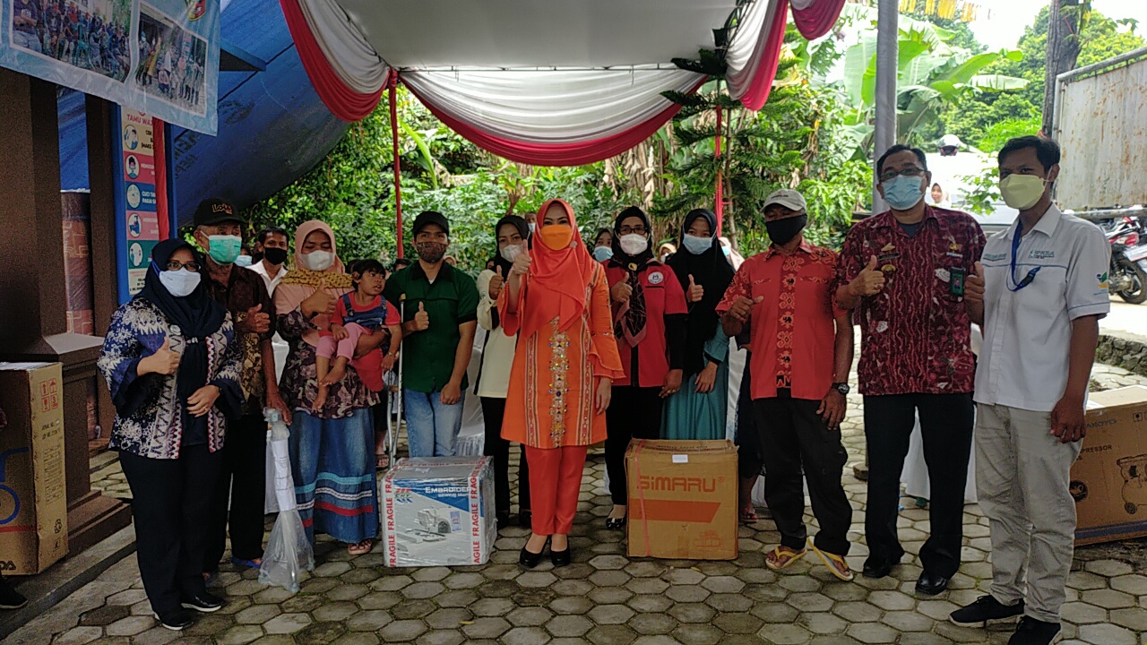Cahayalampung.com (Tanggamus) – Bupati Tanggamus Hj. Dewi Handajani, menyerahkan Bantuan Alat Bantu dan Usaha Ekonomi Produktif (UEP), kepada penyandang disabilitas, binaan Lembaga Kesejahtetan Sosial (LKS) Alamanda Kabupaten Tanggamus, di Halaman Kantor LKS Alamanda, Pekon Gistingatas Blok 13, Kecamatan Gisting, Jum’at (15/10/2021).