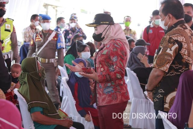 Cahayalampung.com (Tulang Bawang) – Bupati Tulangbawang Winarti melakukan peninjauan vaksinasi yang dilaksanakan oleh PT Pusri, di Kampung Dwi Warga Tunggal Jaya, Kecamatan Banjar Agung, Jumat (15-10-2021).