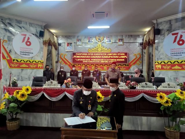 Cahayalampung.com (Lampung Utara) – menggelar Sidang Paripurna tahap akhir dari seluruh rangkaian pembahasan atas 4 (empat) RAPERDA, yaitu 3 (tiga) RAPERDA Inisiatif DPRD Kabupaten Lampung Utara, serta 1 (satu) RAPERDA yang berasal dari Pemerintah Kabupaten Lampung Utara.
