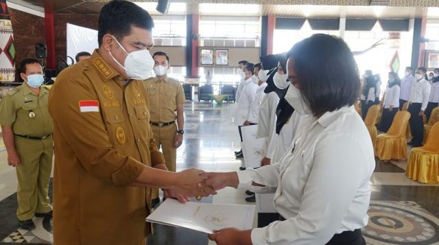 Dalam Laporannya Kepala BKPSDM Yudari Hasan mengatakan Jumlah Calon Pegawai Negeri Sipil yang menerima SK Sejumlah 159 Orang dengan rincian Auditor 27 Orang, Penyuluh Pertanian 30 Orang, Tenaga Kesehatan 102 Orang yang terbagi berdasarkan Golongan III Sebanyak 112 dan Golongan II sebanyak 47 Orang.