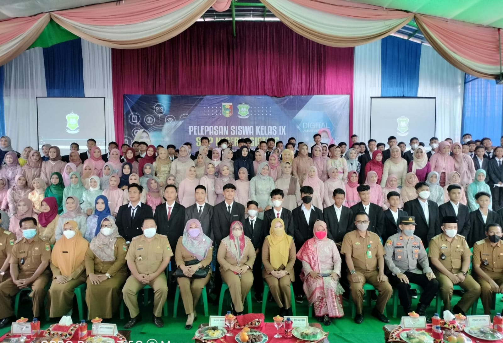 “Tak terasa tiga tahun telah berlalu, dari awal kalian masuk dan menuntut ilmu di sekolah ini, hingga pada saat ini kalian semua lulus 100% dengan nilai yang memuaskan. Kita yang hadir disini merasa bangga. Dan kini saatnya kalian melanjutkan pendidikan ke jenjang yang lebih tinggi yaitu ke tingkat SMA/sederajat, Mudah-mudahan dengan ilmu yang telah diajarkan di sekolah ini bisa menjadi bekal untuk kehidupan kalian dimasa depan nanti,” ujar Bupati.