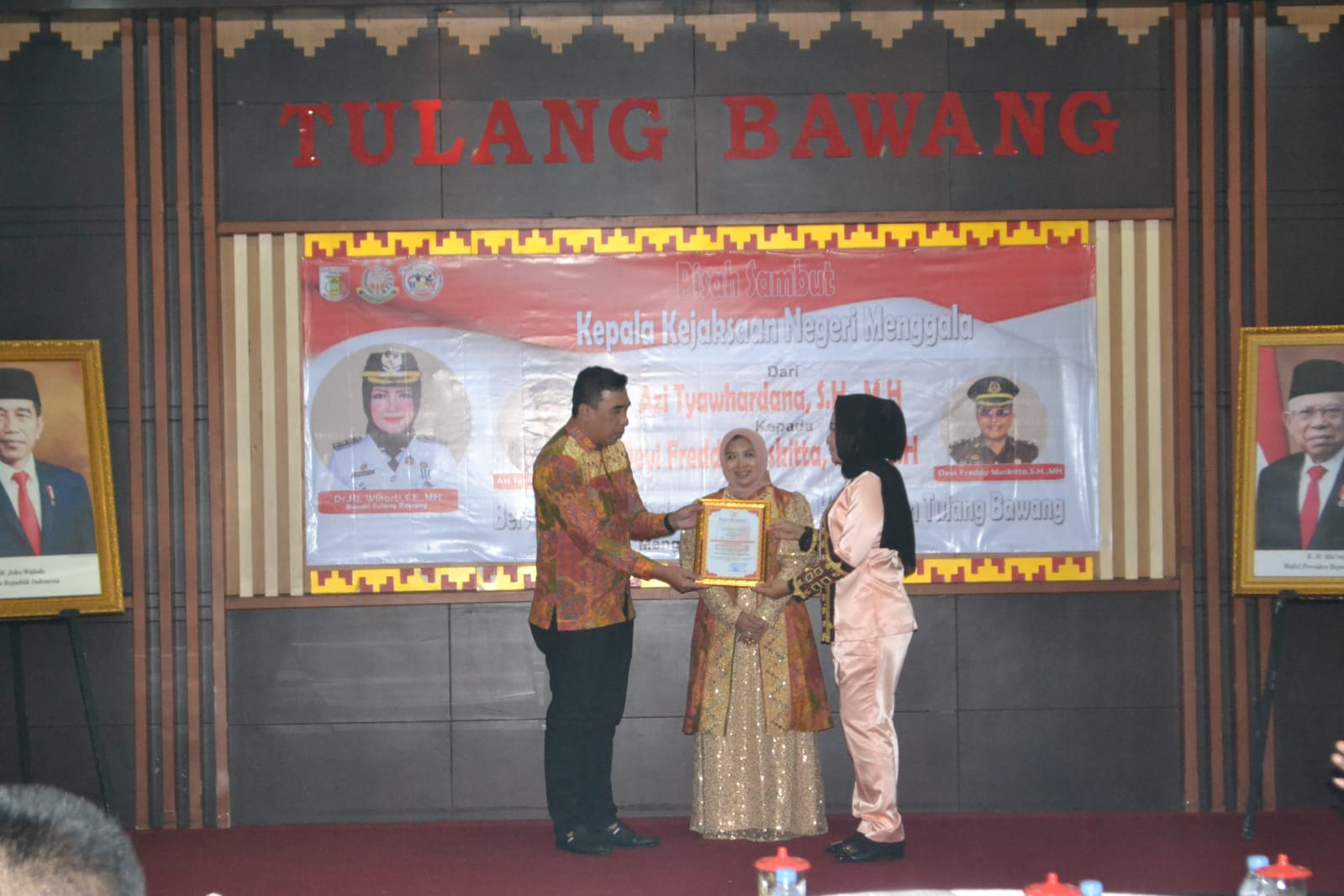 Bupati Tulangbawang Winarti, menyampaikan terimakasih kepada Kajari Tulangbawang Azi Tyawardhana yang telah bekerja keras dan mengabdi sepenuh hati, dalam memajukan dan ikut serta dalam pembinaan penegakan hukum di kabupaten yang berjuluk Sai Bumi Nengah Nyappur.