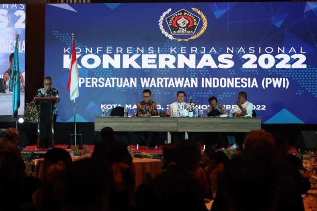Cahayalampung.com (Malang) – Persatuan Wartawan Indonesia (PWI) Pusat menggelar Konferensi Kerja Nasional (Konkernas) 2022 di Ballroom Hotel Mercure, Malang, Senin, 21 November 2022. Forum tertinggi menjelang Kongres itu berlangsung kondusif.
