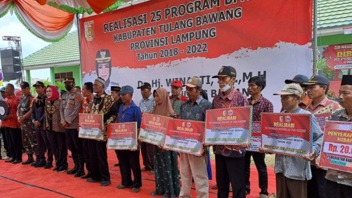 Pemberian tersebut diserahkan langsung Bupati Tulangbawang Winarti saat kunjungan kerja realisasi 25 Program Bergerak Melayani Warga (BMW) pada Nopember lalu.