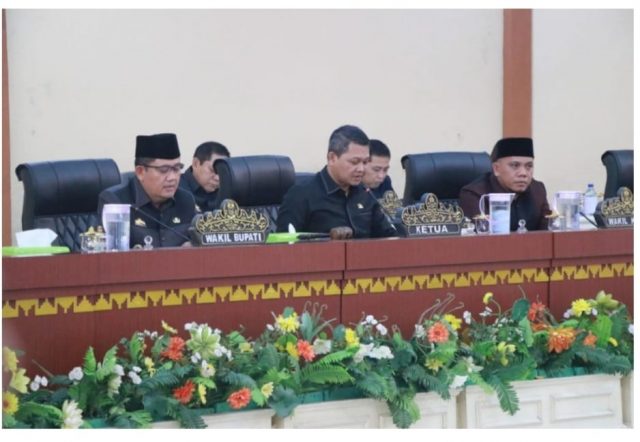 Rapat Paripurna yang dilaksanakan di Ruang rapat utama Gedung DPRD Kabupaten Tanggamus dipimpin oleh Ketua DPRD Kabupaten Tanggamus Heri Agus Setiawan, S.Sos didampingi oleh Wakil Ketua III DPRD Tanggamus Kurnain, S.IP. Dari pihak Eksekutif hadir Wakil Bupati Tanggamus Hi, AM Syafi’i, S.Ag, Sekretaris Daerah Kab. Tanggamus, Hamid Heriansyah Lubis, Forkopimda, Para kepala UPD, Camat dan para tamu undangan.