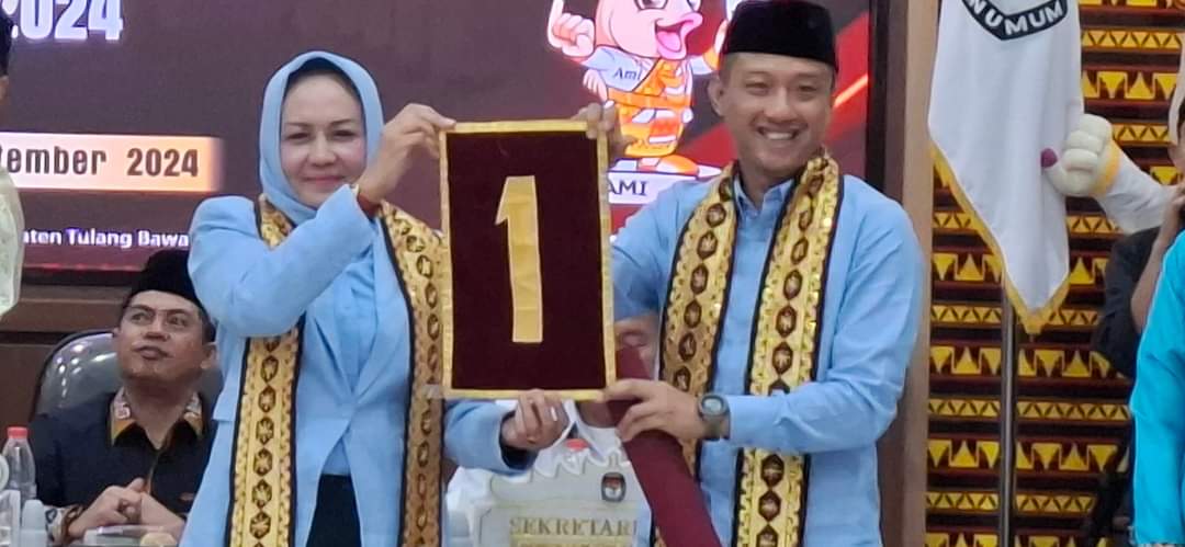 Menggala–Pasangan Calon (Paslon) bupati dan wakil bupati Tulangbawang Winarti-Reynata atau Win-Nata mendapatkan nomor keberuntunga yakni nomor urut 1 dalam Pengundian nomor urut yang dilaksanakan oleh Komisi Pemilihan Umum Daerah (KPUD) hari ini, Senin (23-09).