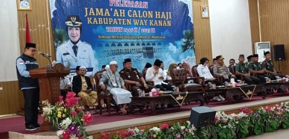Plt. Bupati Way Kanan Ayu Asalasiyah melepas secara langsung calon jemaah Haji didampingi Kepala Kementerian Agama Kabupaten Way Kanan, Masir Ibrahim, Pj. Sekda Arie Anthony Thamrin, Danlanudad Gatot Subroto Letkol CPN I Putu Arry PB Pratuana, Kepala Kemenag, Tokoh Agama serta sejumlah perwakilan dari TNI, Polri, Kejaksaan, dan instansi pemerintah lainnya.