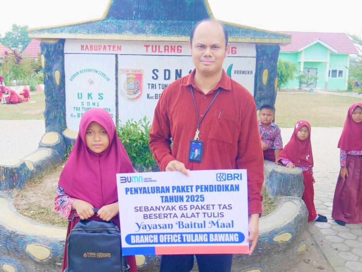 Pemimpin Cabang BRI Tulang Bawang, Fuadi, menjelaskan kami dari BRI Branch Office Tulang Bawang telah mengadakan pemberian paket bantuan sebanyak 65 tas berikut alat tulis. Program dari YBM Bri Ro Bandar Bandar Lampung untuk siswa tidak mampu di wilayah Branch Office Tulang Bawang.