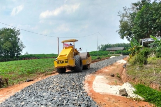 Banjar Agung, (SMSI)–Prmerintah Kampung (Pemkam) Banjar Dewa, Kecamatan Banjar Agung, Kabupaten Tulang Bawang, tahun anggaran 2025 melakukan pembangungan infrastruktur jalan lingkungan yaitu Underlagh atau pengerasan badan jalan di RT 001 RW 004 tepatnya jalan makam volume 250 M dengan anggaran Rp88.650.000,- sumber Dana dari Dana Desa.