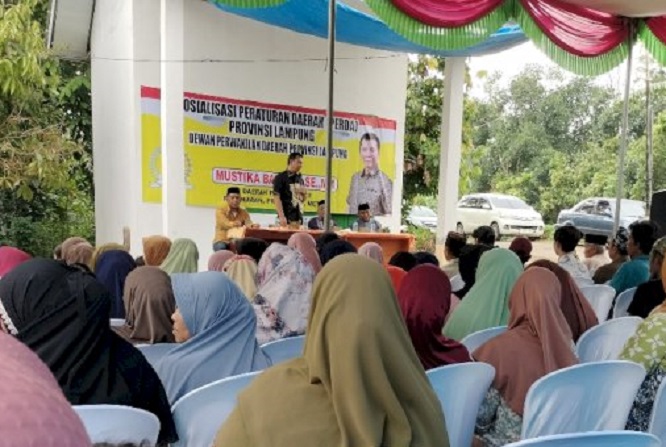PESAWARAN – Anggota DPRD Provinsi Lampung, Mustika Bahrum, menggelar Sosialisasi Peraturan Daerah (Sosperda) Provinsi Lampung Nomor 1 Tahun 2016 tentang Pedoman Rembug Desa dan Kelurahan dalam Pencegahan Konflik di Desa Tanjung Agung, Kecamatan Way Lima, Kabupaten Pesawaran, Sabtu (24/01/2026).